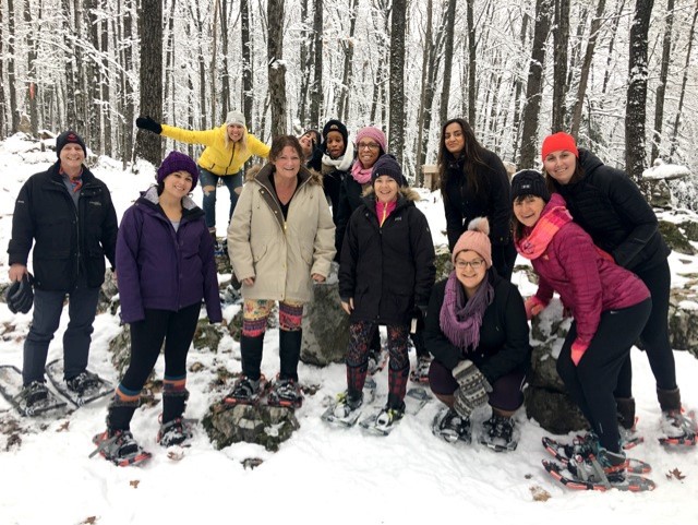 After lunch we had a “bonding ceremony for two” that, truthfully, was strange and awkward but oddly enough left me emotional and thanking my mom for the role that she plays in my kid’s lives and my own. Having not had at all a great relationship growing up, this was kinda huge for me and felt like a good “opening” for the weekend. Then we had free time to check out the hot tub which overlooks the lake and I had no idea how gorgeous Bancroft is in winter. Fluffy snow sitting on all the trees, the view was spectacular and again just peacefully quiet while soaking away our troubles in the tub!