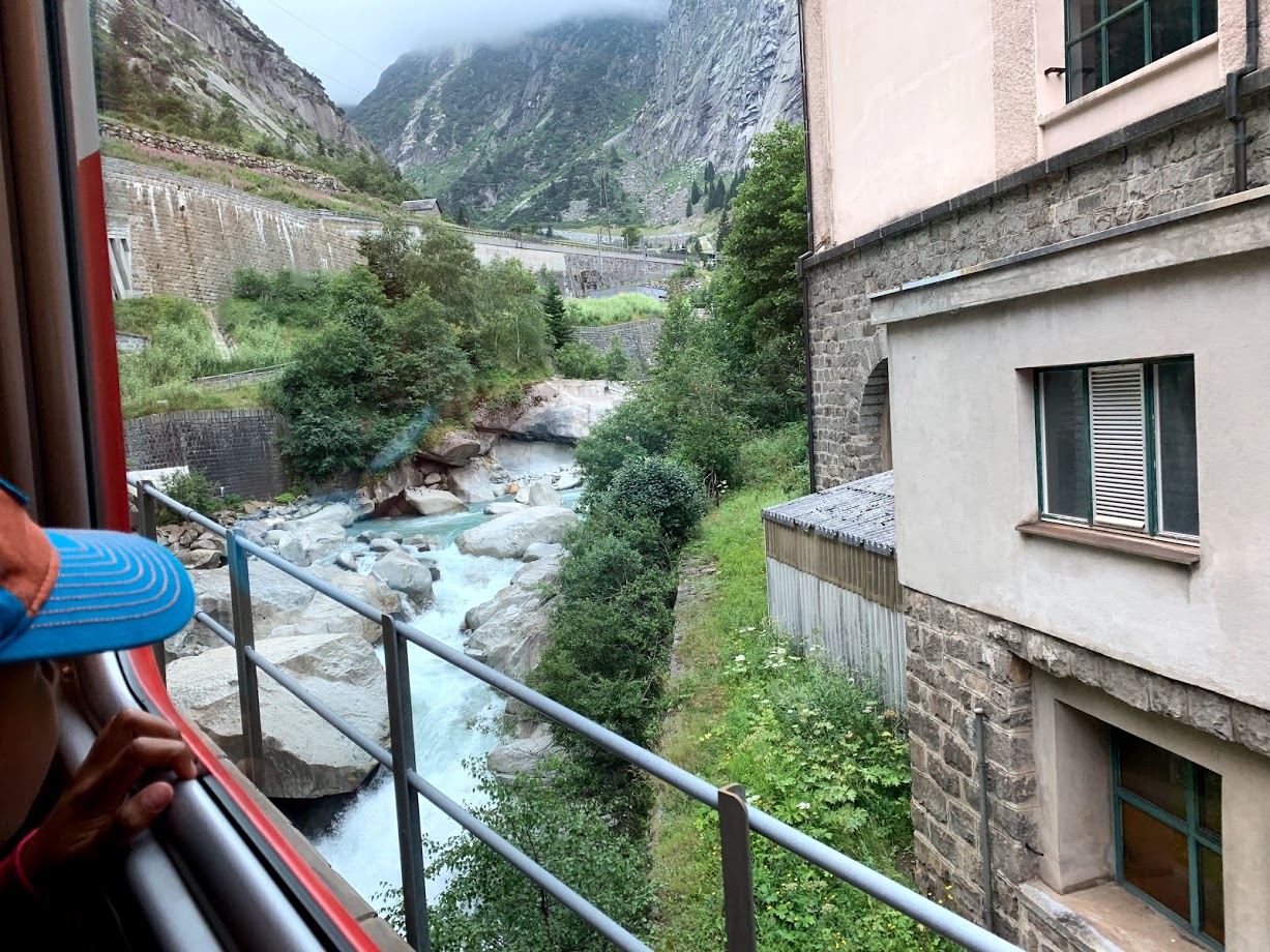 In the evening we made our way to the Aletsch Arena of Valais about four hours of connecting trains in which we went through a 15 KM tunnel. The views outside our window was like a movie. The journey didn’t feel long and I didn’t read a single page out of the book I had because I spent most of the time looking out the window.