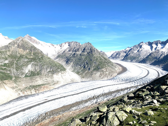 We stayed in Bettmeralp in the Aletsch Arena at the Panorama hotel for a few nights and there is not a bad view anywhere in Bettmeralp. We hiked from one village to the other at around 7600 feet along the Aletsch Glacier, the largest glacier in the alps. It was only a 3.5 KM hike and should take about 1.5 hours but it took us 2 because we kept stopping to take in the view and take photos. It’s a relatively easy hike if you are an active family. You’ll need to dress in layers.