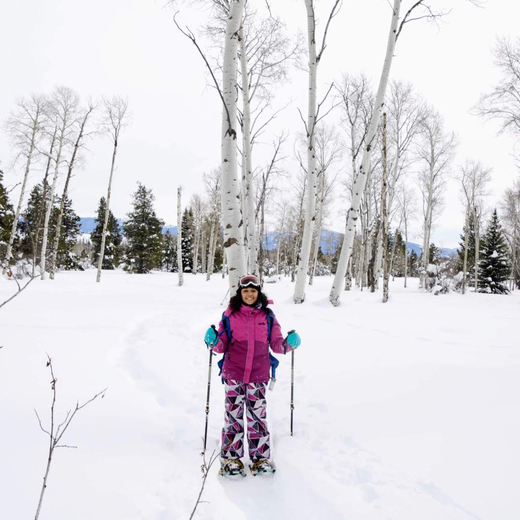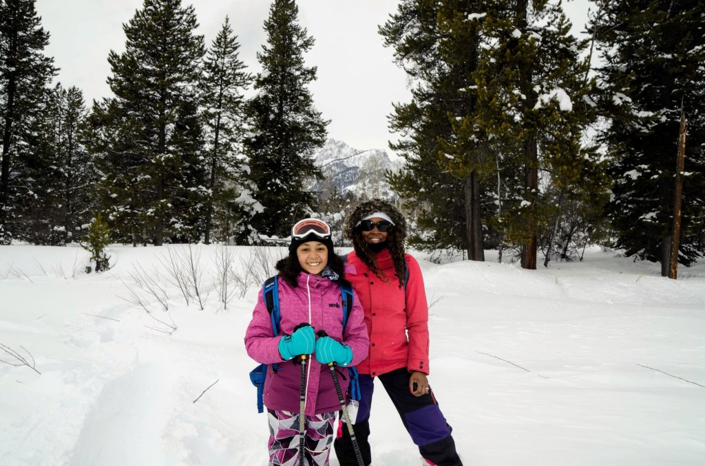 Do you want to have a great winter vacation but not everyone in the family wants to spend all day on the slopes? The variety of activities in Jackson Hole makes it a great spot for a family winter getaway. While hubby and the 7-year-old spent time on the slopes, the 11-year-old and I went on a snowshoe hike. We opted for the leisurely group hike which provided amazing views of the Tetons. The hike was about 4 hours and our guide from Jackson Hole EcoTour Adventures educated us about all the animals who call the park home. The hike takes place at 7000 feet about sea level and is a lovely way to spend an afternoon.