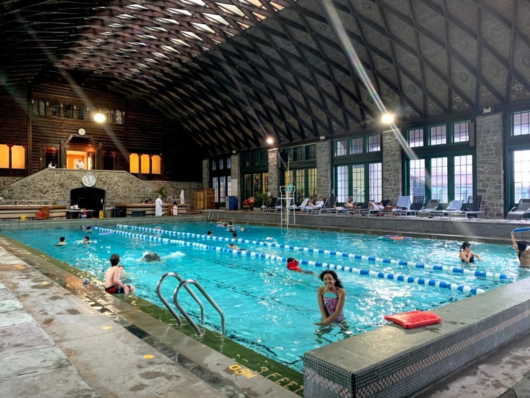 Instead of a hotel, we were delighted to find out Fairmont Le Chateau Montebello is a resort and, though we were there for 3 days and two nights, we didn’t even come close to experiencing all the indoor amenities they have. Our favourite, of course, is the massive indoor pool accessible by a tunnel so you don’t have to walk outside. Near the pool is the spa, tennis courts and squash courts.