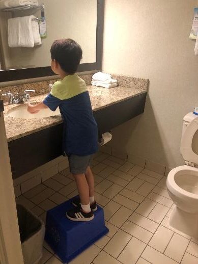PRO: There are ramps instead of stairs in the building! I don’t remember seeing any stairs. Washing stations and stepping stools are everywhere! There’s a baby and toddler area on the first floor. There’s a nursing area and a microwave to warm up milk for the baby.