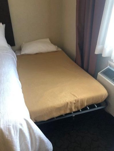 PRO: Fold away the bed so the kids can all sleep in the corner, and I don’t have to rearrange furniture or worry about someone rolling off the bed. Night light from the hair dryer in case of nighttime peeing. 5-15 minutes from everything around town, a central and convenient location. The water pressure is good; bonus for providing a shower cap, LOL