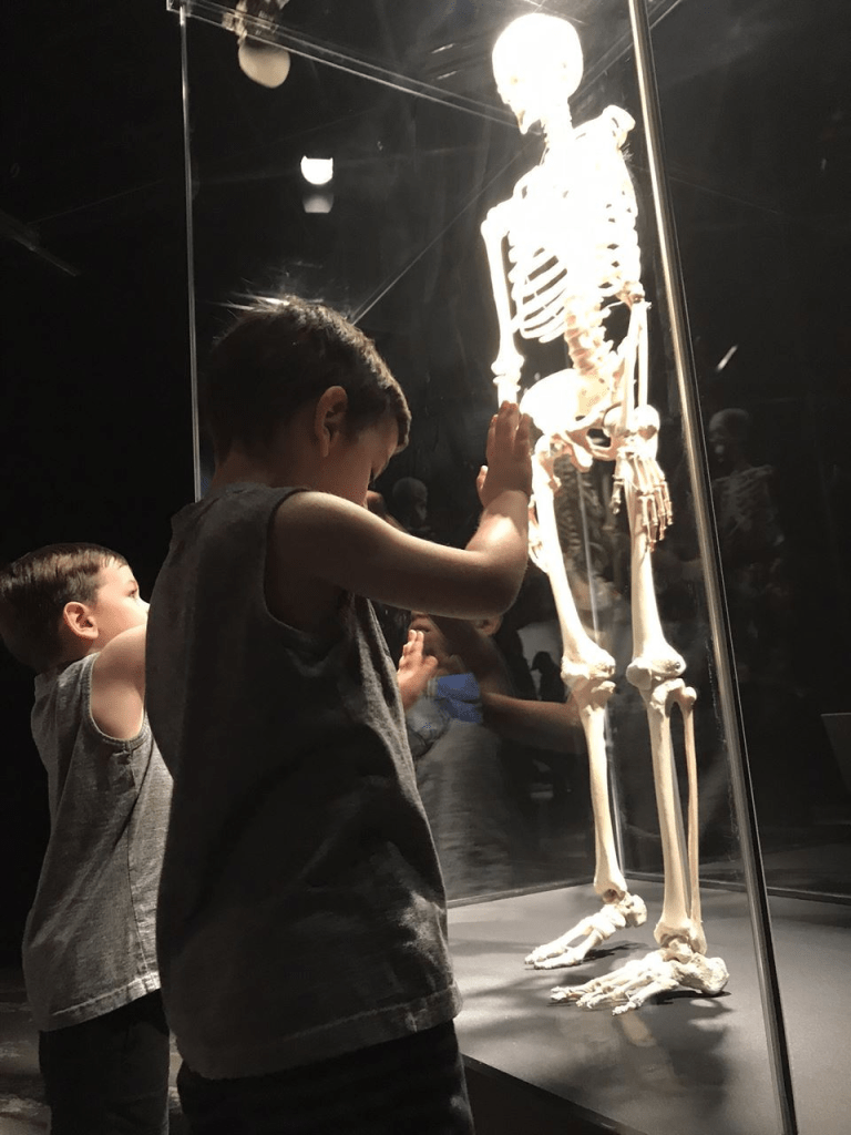 The boys loved the simulator that made their skeleton dance however they moved on the screen. They also loved learning about all of the different bones, and one of the staff there let them play a game where they guess where each organ goes in the body.