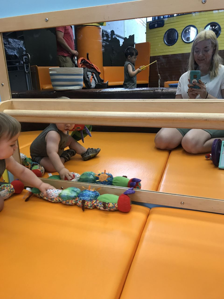 Next, it was on to the Toddler’s Treehouse area for some play time. This spot was especially great for my youngest, as he was able to stretch his legs and crawl around after being in the stroller for a while. There was a mini pirate ship, complete with windows to pretend to fish out of.