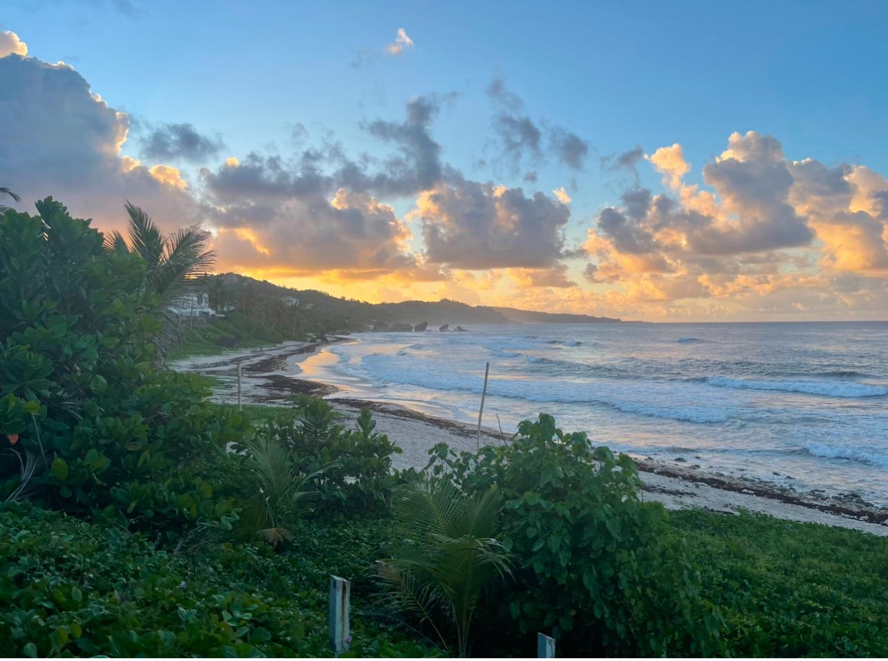 The waves smashing against the massive Atlantic boulders contrasted sharply with the calm waters of the Caribbean Sea on the island’s west coast. It was a surfer’s dream. The sounds of the crashing waves were tranquil, the views spectacular, and the sunset over Bathsheba was unforgettable.