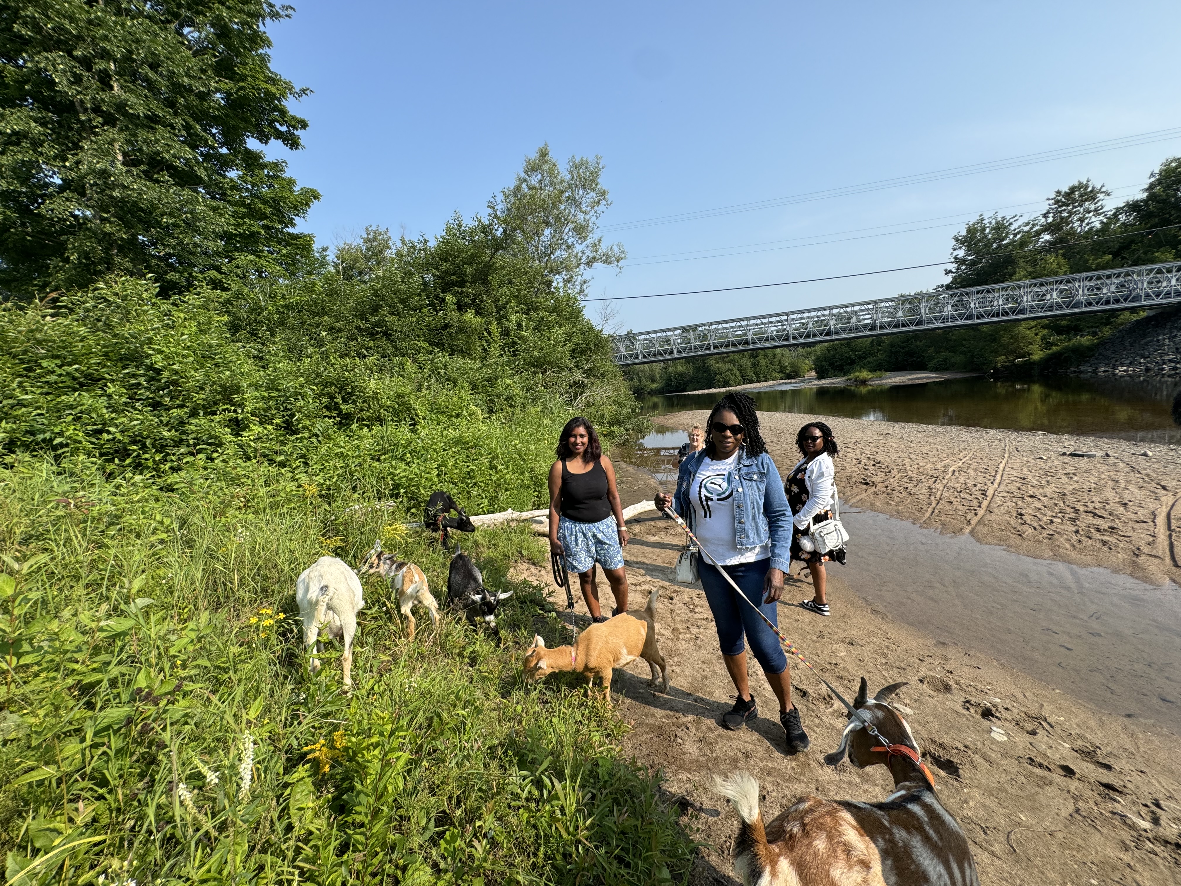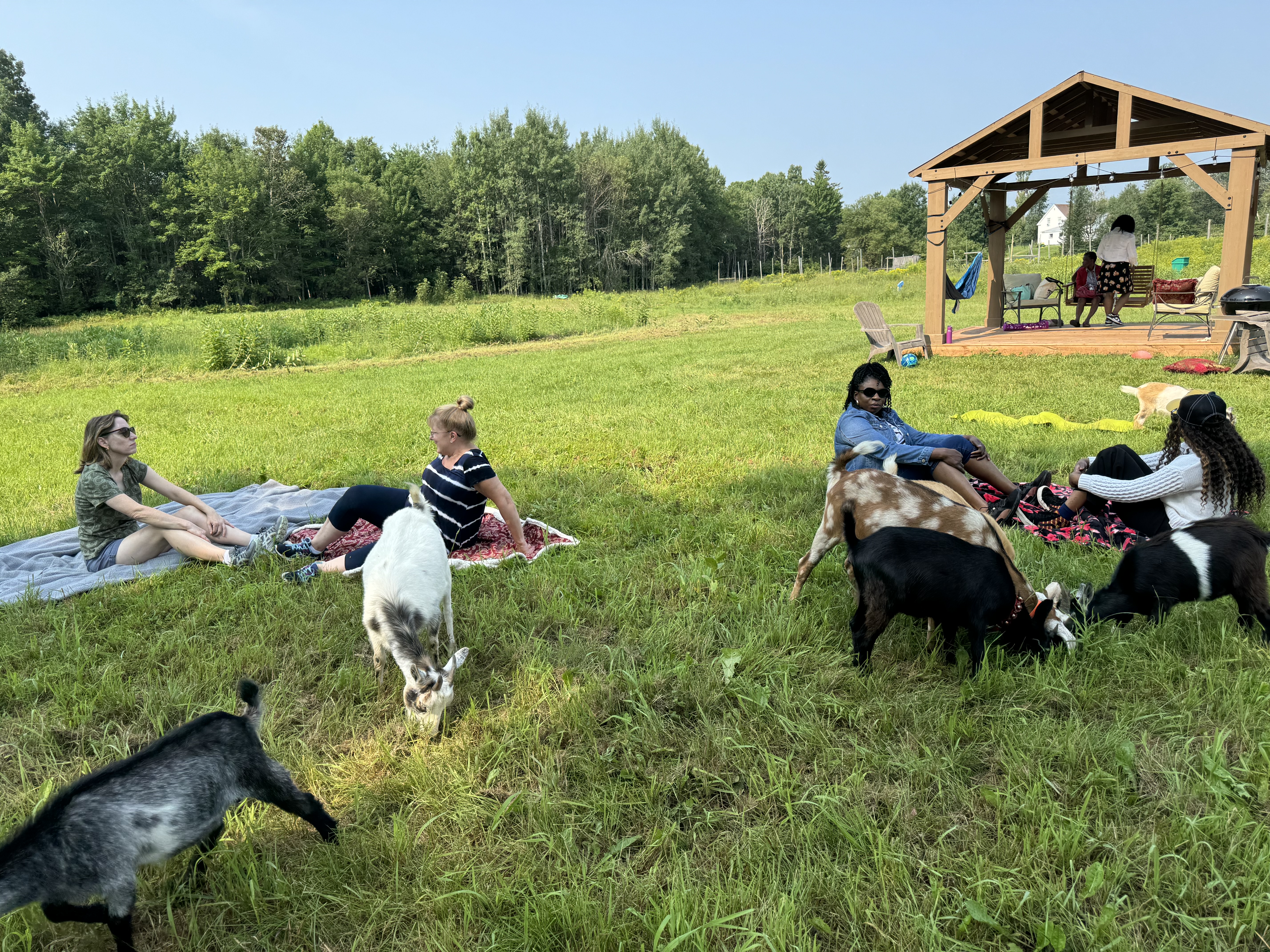 I’ve done yoga with baby goats before, but never done a hike with goats. It was unexpectedly full of laughter and cuteness overload. We visited Dancing Goat Therapy Farm for LlamAzing Hikes and Llamastay Yoga. Goats, it turns out, are excellent hiking companions. The Burtts Corner countryside with