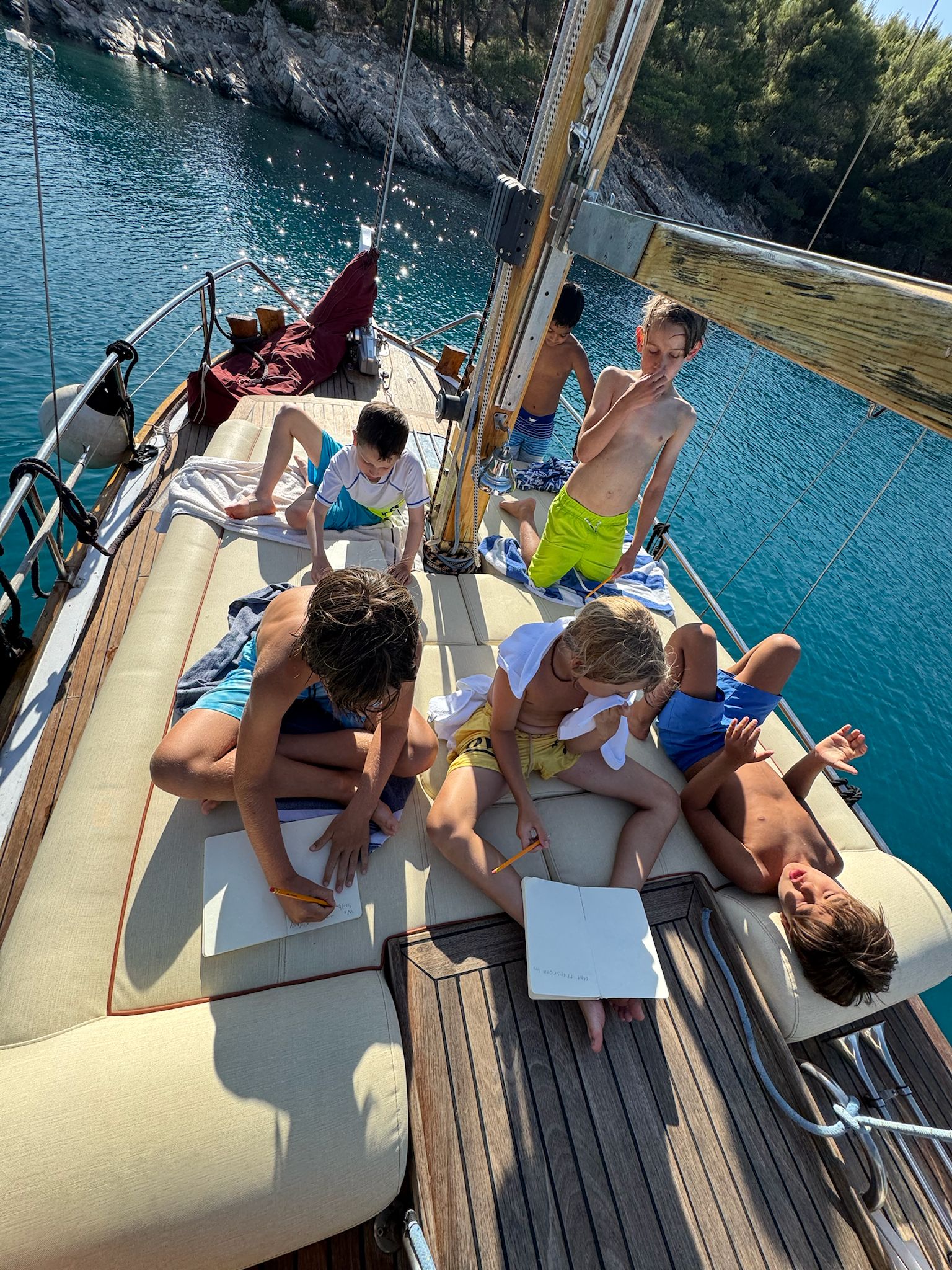 It was the most magical experience. It ruined them for “regular camps” for years to come! The camp was from 2 to 9pm every day (because of the heat and kids’ activities being later). They were in small groups with educators from around the world: an equestrian educator from Utah, a beach school specialist from Australia, a forest teacher from the UK, plus people from the community who opened their arms (and their homes!) to our children. They had dinner at a local woman’s home almost every night, where they helped harvest veggies from the garden and cleaned up their dishes after dinner. They often took boat taxis to different towns. They went to the beach multiple times per week… They prepared a play, built a boat… It really was as amazing as it sounds.