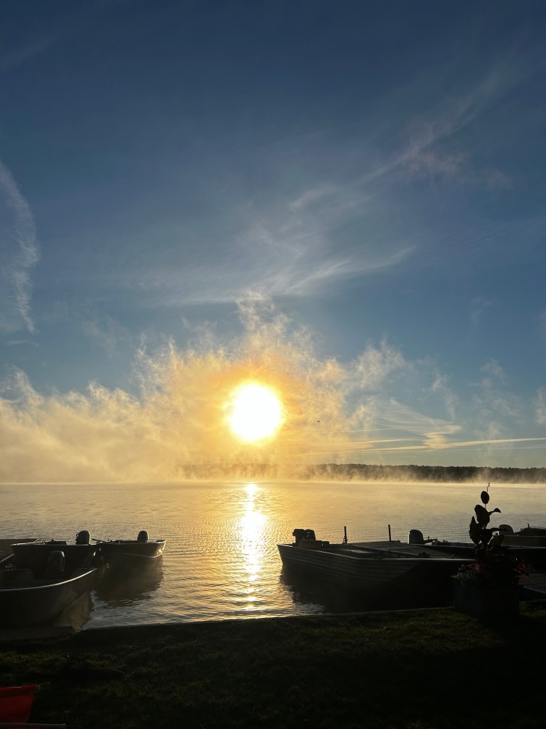 A peaceful view of Lower Buckhorn Lake at sunrise—the perfect start to our retreat at Beechwood Resort.